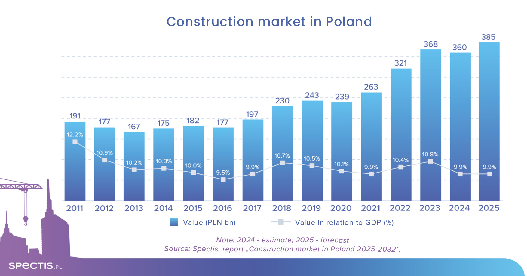 The "Construction market in Poland 2024-2031" report, the latest release of Spectis, indicates that construction companies improved their margins a tad in 2023, recording an all-time high in terms of net profit. As it was the case in both 2021 and 2022, the profits were driven by renegotiation of price contracts, in particular in the civil engineering construction segment.